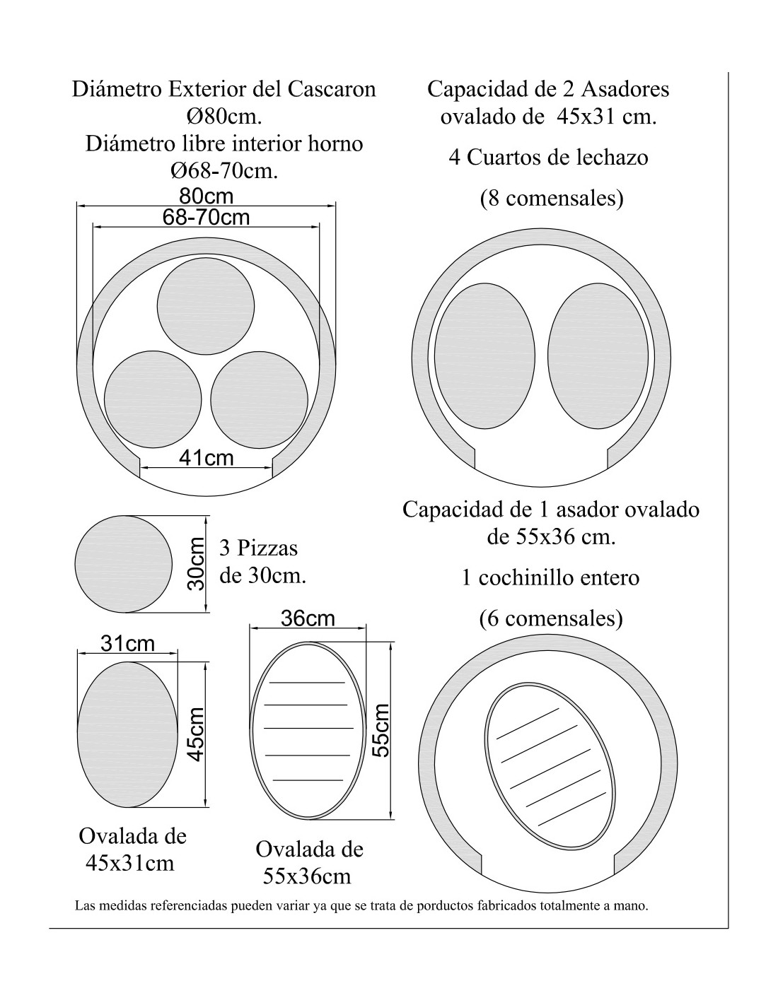 Diámetro INTERIOR del horno y superficie útil: Ø 80 cm (0,38 m2) - 90 cm (0,52 m2)